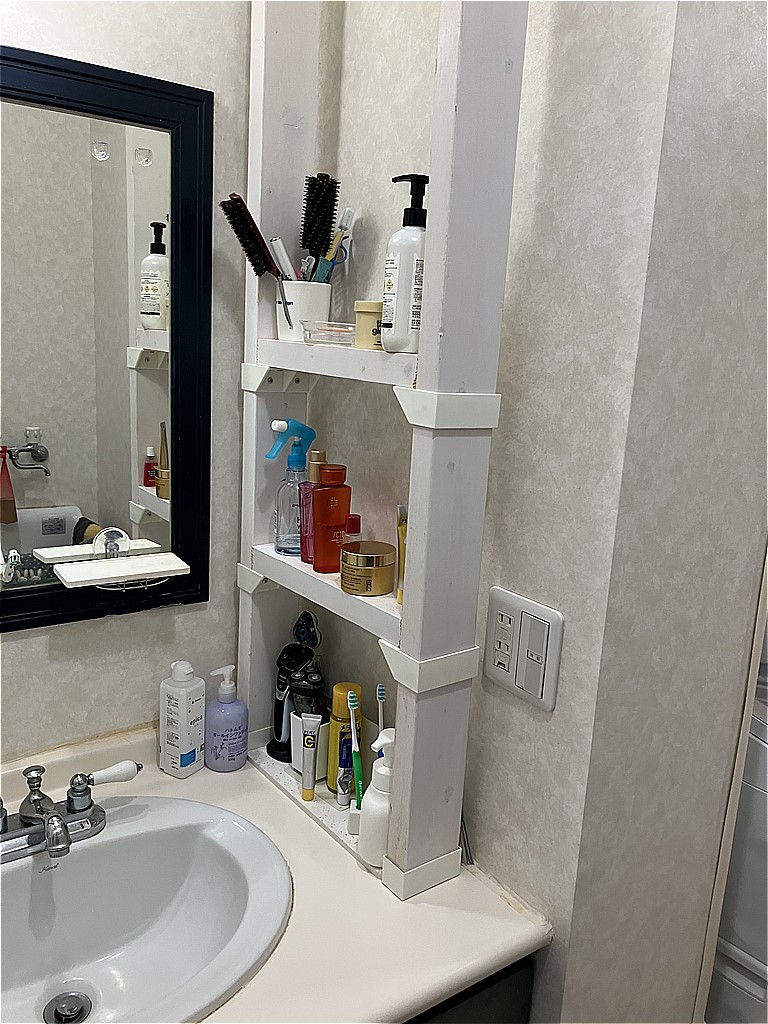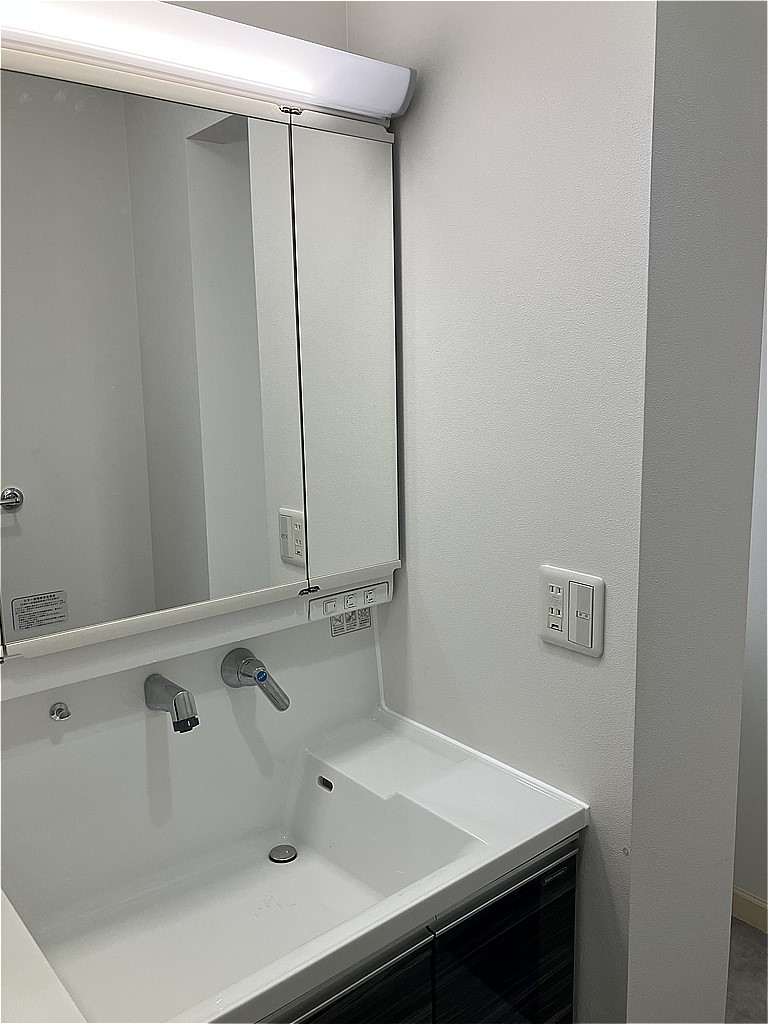 ミラーは3面鏡で収納もバッチリですので、スッキリしますね。