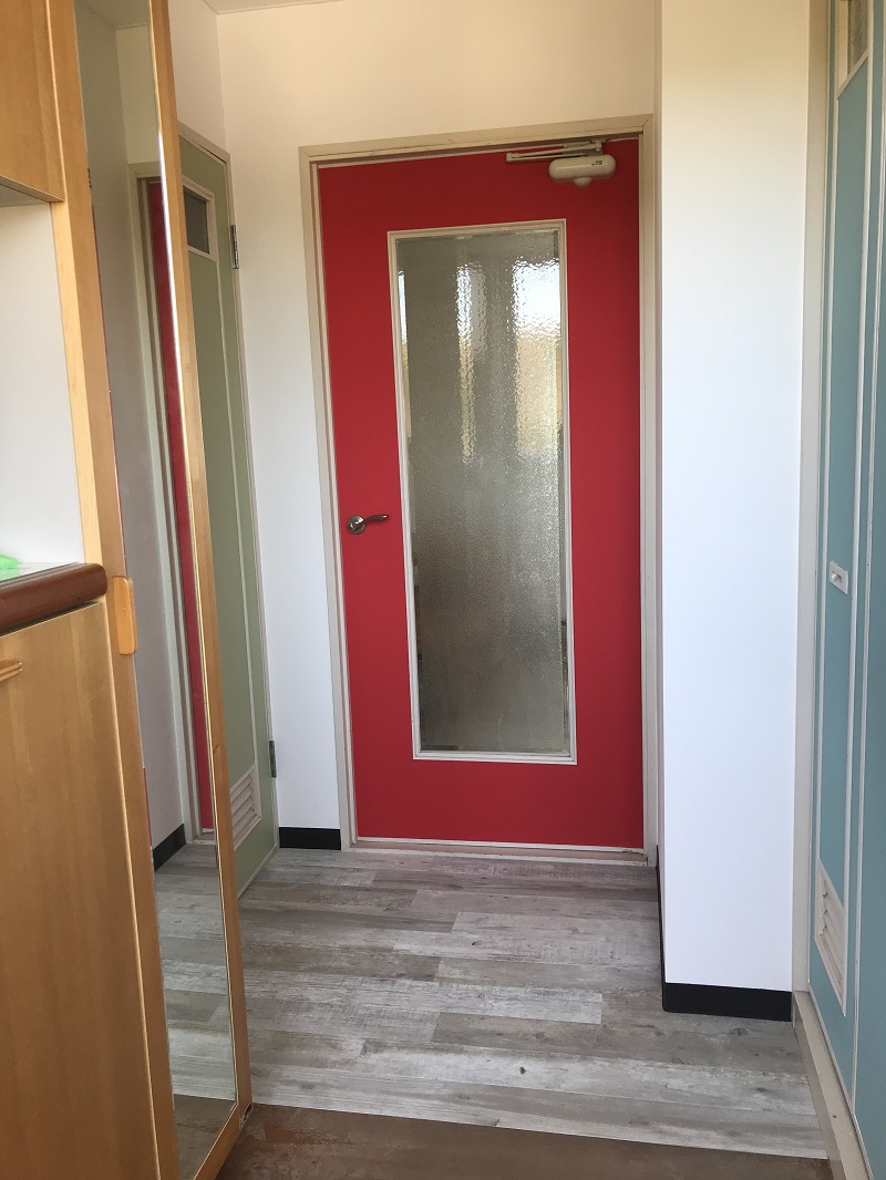 こちらは玄関から入ってすぐ、お手洗いの扉です。
