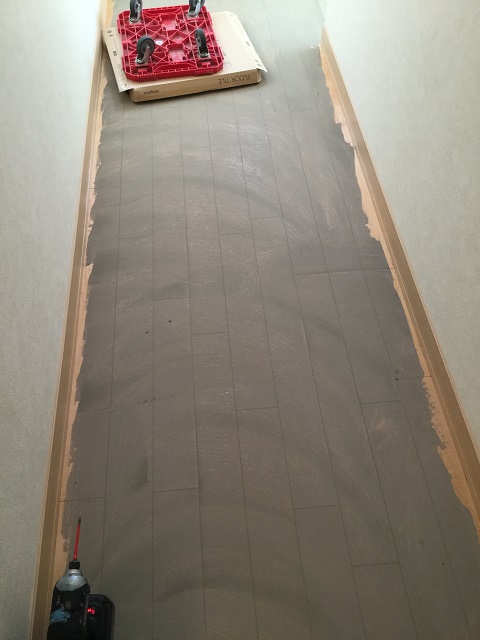 フロアタイルを貼り合わせていきます