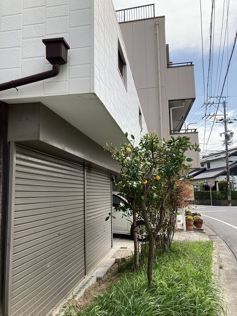 シャッター前のスペースが花壇のため出入りが