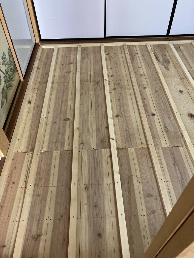 今日は和室の畳からフローリングに